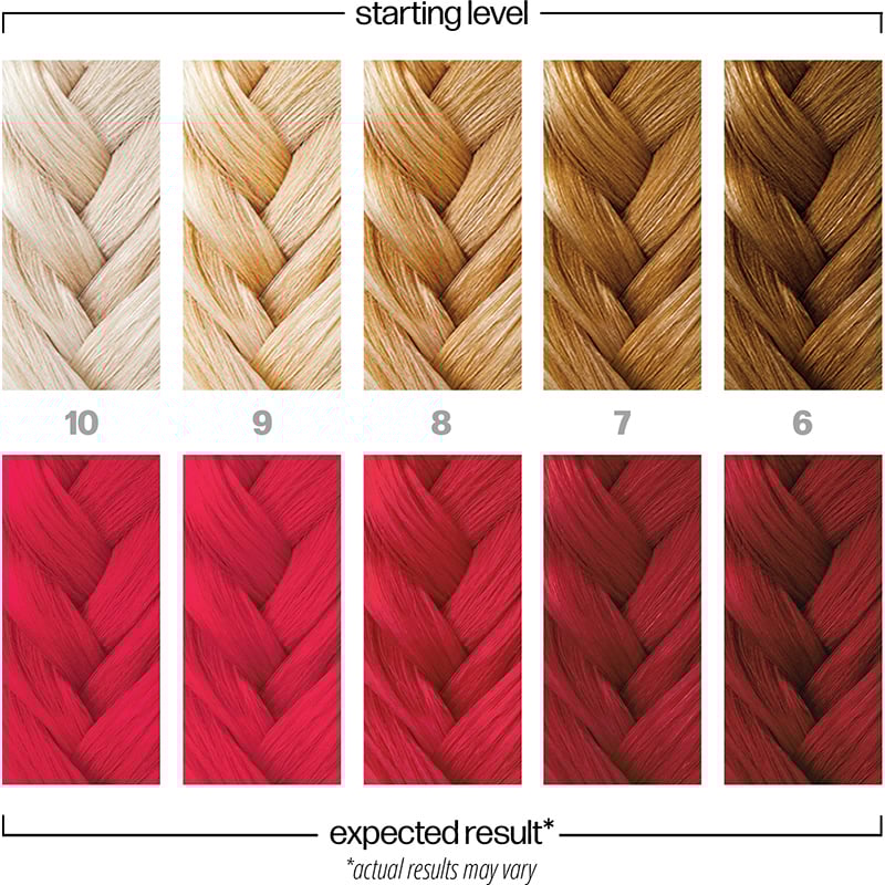 For the most vibrant colour results, it is recommended to pre-lighten (bleach) the hair before applying the semi-permanent colours. Use the colour chart on the back of the packaging to help you decide how light to bleach for maximum vibrancy, and to see what colours look best on different hair colour levels. Be sure to fully shampoo and rinse out all the bleach. Any residue left in the hair will compromise your colour results.