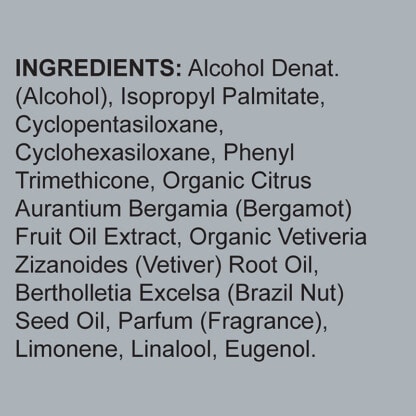 Woody, balsamic, powdery with top notes of lemon, orange, cypress and galbanum. Middle notes of lavender, geranium and rosewood and bottom notes with patchouli, cedarwood, vetiver and vanilla.