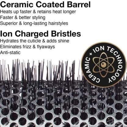 Tourmaline Ion TechnologyHydrates hair cuticleAdds more shineEliminates frizz and fly-away strands![]() Soft-tip bristles gentle on hair and scalpAnti-static effect |