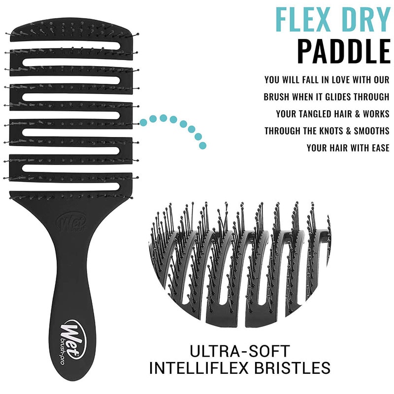 WetBrush is specially formulated with IntelliFlex™ bristles. These bristles are thin, strong and very flexible. This allows them to be flexible on one stroke and firm on the next. It eliminates all tugging, tearing, pulling and ripping of the hair to ensure no split ends or hair loss while providing healthy brushing and detangling. These bristles will glide through any hair type, combing out tangles effortlessly. Bristle flexibility enables protective and pain-free detangling. Bristles bounce back to their original form after each stroke eliminating all hair breakage and pain usually associated with hair brushing. The perfect transition from wash to style.
